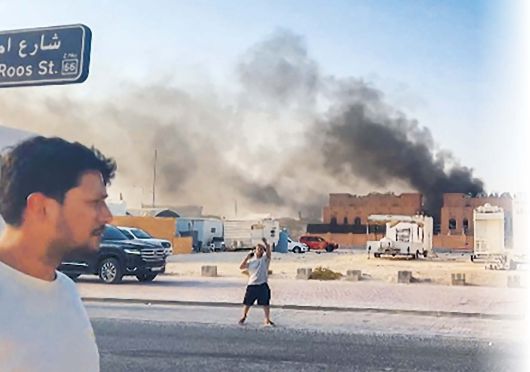 ◀9일(현지시간) 카타르 수도 도하에서 이스라엘의 공습으로 건물이 불타고 검은 연기가 치솟고 있다. 이날 이스라엘 군 관계자는 이스라엘 군이 팔레스타인 무장단체 하마스의 고위 지도자들을 겨냥한 작전의 일환으로 도하에 대한 공습을 감행했다고 외신을 통해 밝혔다. [AFP] |