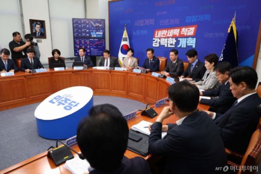 박수현 민주당 수석대변인은 10일 오전 서울 여의도 국회에서 진행된 최고위원회의를 마친 뒤 기자들과 만나 "(여야 대표와 이재명 대통령 회동에서) 여야 민생경제협의체를 출범하기로 기쁘게 보고 드렸지만 그것과 내란 청산의 문제는 다른 것"이라고 말했다.