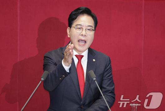 (서울=뉴스1) 이승배 신웅수 기자 = 송언석 국민의힘 원내대표가 교섭단체 대표연설을 통해 정부와 더불어민주당을 거세게 맹폭했다.