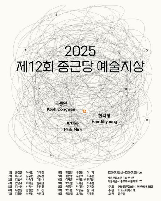 (문화뉴스 백현석 기자) 종근당홀딩스가 오는 11일부터 22일까지 서울 종로구 세종문화회관 미술관 1관에서 '제12회 종근당 예술지상 기획전'을 연다.