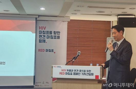 진범식 국립중앙의료원 감염내과 교수가 10일 서울 중구 한국프레스센터에서 열린 'HIV 차별종식을 위한 레드(RED) 마침표 캠페인' 기자간담회에서 발표하고 있다./사진= 박미주 기자 |