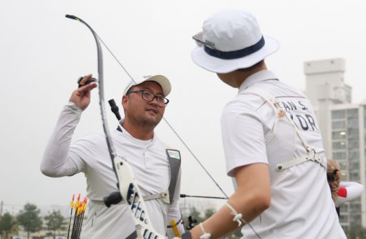 뜨거운 응원 속 경기가 펼쳐졌다. 한국은 초반 경기력이 좋지 않았다. 안산과 김우진이 첫 발을 각각 8점에 꽂으며 주춤했다. 한국이 1세트를 35-36으로 내줬다.