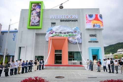 참석자들은 글로벌 웹툰 허브센터로 이름을 바꾸고 새로 단장한 건물의 현판 제막식에 이어 차담회를 하고 기업 간 공동 프로젝트, 청년 인재 양성, 산학협력 확대 등 방안을 논의했다.