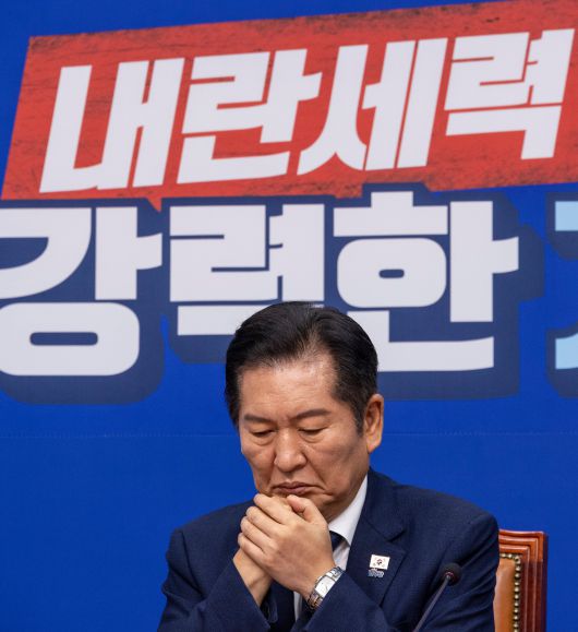 더불어민주당 정청래 대표가 10일 국회에서 열린 최고위원회의에서 발언을 마친 뒤 생각에 잠겨 있다. /연합뉴스 |