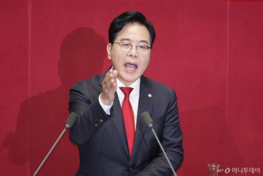 반대로 국민의힘 의원들은 송 원내대표가 단상에 올라서는 순간부터 일제히 박수를 보내며 힘을 실었다. 송 원내대표 연설 중간중간에는 "잘한다" "옳소" 등을 외치며 응원했다.