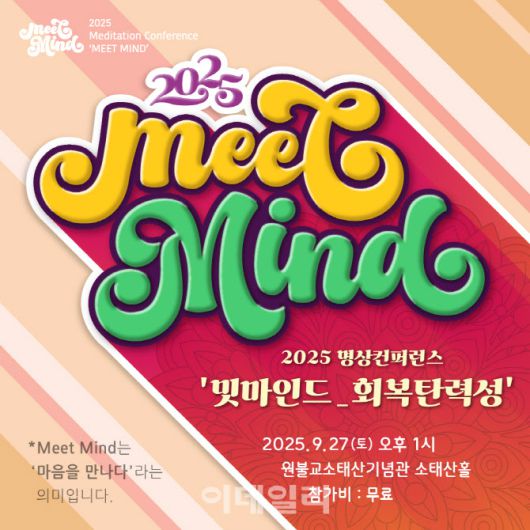 [이데일리 강경록 여행전문기자] 명상을 통해 회복탄력성을 기르는 컨퍼런스가 서울에서 열린다. 원불교 교정원 문화사회부와 원불교 명상상담협회가 주최하는 ‘밋마인드(Meet Mind)’가 이달 27일 서울 동작구 소태산기념관에서 막을 올린다. 문화체육관광부가 후원하는 이번 행사는 종교인뿐 아니라 일반 시민 누구나 참여할 수 있다.