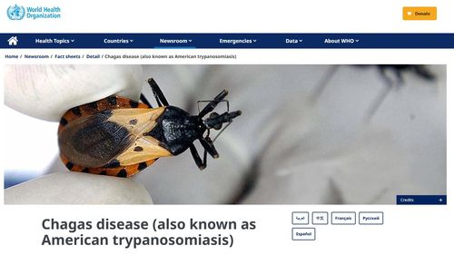 WHO 홈페이지의 샤가스병 설명. 사진은 이 병을 옮기는 흡혈 곤충. |