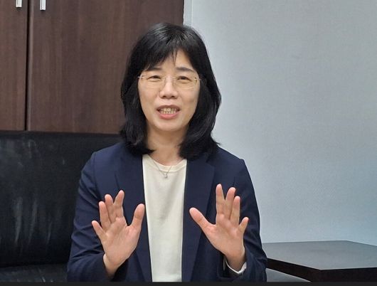 대만 증권투자자·선물거래자 보호센터(SFIPC)의 장신티 이사장이 8월 25일 한겨레와 인터뷰하고 있다. 이봉현 |