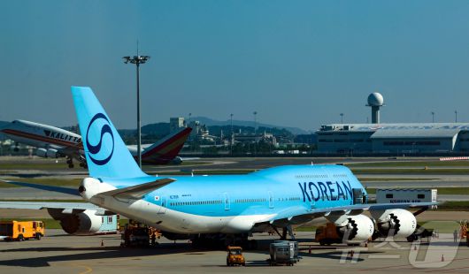 미국 조지아주 현대차그룹-LG에너지솔루션 배터리 합작 공장 건설 현장에서 구금된 한국인들을 태울 대한항공 B747-8i 전세기가 10일 오전 인천국제공항 2터미널 계류장에서 이륙을 준비하고 있다. 2025.9.10/뉴스1 ⓒ News1 공항사진기자단 |