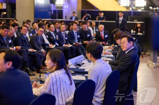 (서울=뉴스1) 이재명 기자 = 이재명 대통령이 10일 서울 마포구 프론트원에서 열린 국민성장펀드 보고대회에서 참석자들의 발언을 듣고 있다. (대통령실 제공. 재판매 및 DB 금지) 2025.9.10/뉴스12expulsion@news1.krCopyright ⓒ 뉴스1. All rights reserved. 무단 전재 및 재배포, AI학습 이용 금지.