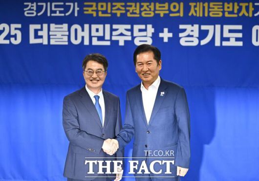 [더팩트ㅣ수원=김시형 기자] 더불어민주당이 10일 내년도 정부 예산안에 대한 국회 심의를 앞두고 경기도와 예산정책협의회를 열었다. 김동연 경기도지사는 반도체·기후경제·AI 등 '미래 성장 3대 프로젝트'를 비롯해 경기북부 재개발 등을 중점 과제로 내세우며 주요 사업에 5331억 원의 국비 지원을 요청했다.