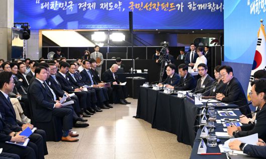 이 대통령은 이날 펀드 운용의 공정성을 강조했다. 이 대통령은 “펀드를 누가 골라서 운영할 것이냐가 정말 중요하다”며 “자칫 잘못하면 이게 부패의 재원이 될 수도 있어서 매우 걱정스럽기도 하다”고 말했다. 그러면서 “우려되는 점에 대해 잘 조언해 주시기를 부탁드린다”고 덧붙였다. 이 대통령은 또 논의 시간이 짧았다며 “관련 부처에서 실제로는 이제 앞으로 논의 기회를 많이 만들게 될 것”이라며 앞으로 기업 쪽에서도 구체적 안을 내 달라고 당부했다.
