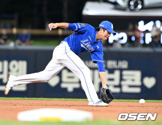 [OSEN=광주, 이대선 기자] 10일 오후 광주-기아 챔피언스필드에서 2025 신한 SOL Bank KBO리그 KIA 타이거즈와 삼성 라이온즈의 경기가 열렸다. KIA는 네일, 삼성은 가라비토를 선발 투수로 내세웠다. 3회말 무사에서 삼성 이재현이 KIA 김태군을 땅볼로 처리하고 있다. 2025.09.10 /sunday@osen.co.kr