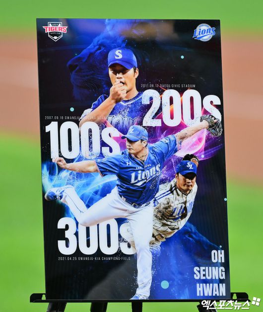 KIA 구단은 오승환의 100세이브, 200세이브, 300세이브 당시 사진(세 기록 모두 KIA 상대, 100세이브 무등야구장, 200세이브 대구 시민야구장, 300세이브 광주-기아 챔피언스 필드)으로 만든 아크릴 액자와 KIA 유니폼에 선수단 사인을 받아 만든 액자를 기념 선물로 전달했다.