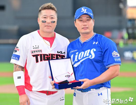 과거 삼성 왕조 시절 함께 뛰었던 옛 동료 최형우가 개인적으로 준비한 감사패도 건넸다. 최형우는 감사패를 전달하는 과정에서 눈시울을 붉히기도 했다.