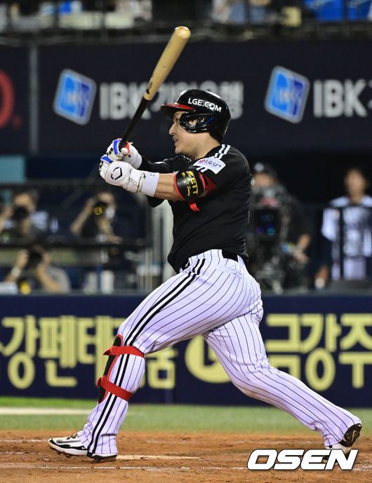 [OSEN=잠실, 조은정 기자]10일 오후 서울 잠실구장에서 ‘2025 신한 SOL Bank KBO리그’ 두산 베어스와 LG 트윈스의 경기가 열렸다. 홈팀 두산은 콜어빈, 방문팀 LG는 손주영을 선발로 내세웠다. 5회초 2사 2,3루에서 LG 박동원이 2타점 인정 2루타를 날리고 있다. 2025.09.10 /cej@osen.co.kr
