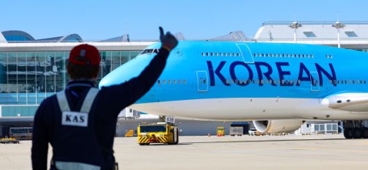 미국 조지아주 현대차그룹-LG에너지솔루션 배터리 합작 공장 건설 현장에서 구금된 한국인들을 태울 대한항공 전세기가 10일 오전 인천국제공항 2터미널 계류장에서 이륙을 준비하고 있다. 연합뉴스 |