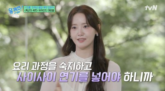 윤아는 “요리는 거의 대부분, 95% 정도는 제가 했다. 3개월 전부터 요리학원을 다니면서 배웠다. 요리가 매개체가 되어 이뤄지는 작품이라 요리가 중요했다. 연기를 하는데 기억력 테스트처럼 숙지하고 인지한 상태에서 연기를 해야하니까. 기억력 테스트라는 느낌이 들었다”고 토로했다.