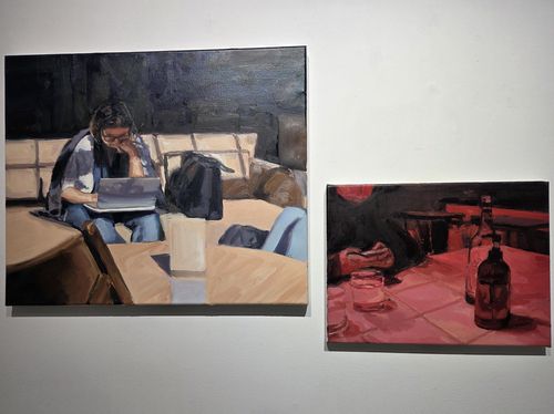 최지원의 회화 '연인들'은 미술관에 있는 네 사람의 모습을 보여준다. 두 명은 서서 추상화를 보고 있고, 다른 두 명은 작품에서 조금 떨어진 벤치에 앉아 있다. 제목은 '연인들'이지만 정작 이들은 서로에게 무관심하다. 회화 '밤산책' 역시 미술관 내 관람객들을 멀리서 관찰하는 시선으로 그려졌다.