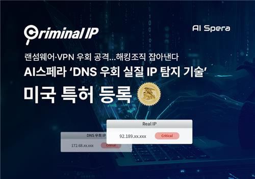 (서울=연합뉴스) 나확진 기자 = 사이버 보안 기업 AI스페라는 'DNS(Domain Name System) 서비스를 이용하는 악성 사이트의 숨겨진 IP 주소를 찾는 방법 및 장치'에 대한 기술에 대해 미국 특허청으로부터 등록 결정을 받았다고 11일 밝혔다.