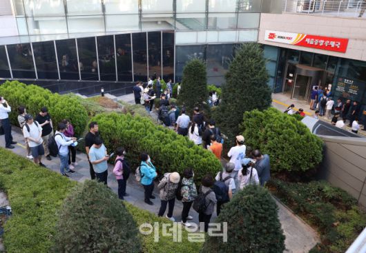 [이데일리 김태형 기자] 11일 서울 중구 서울중앙우체국 입구에서 시민들이 '이재명 제21대 대통령 취임 기념우표'를 구입하기 위해 대기하고 있다. 이재명 대통령의 취임 100일을 맞아 발행된 기념우표는 전지 22만 장(낱장 328만 장), 소형시트 45만 장, 기념우표첩 5만 부이다.
