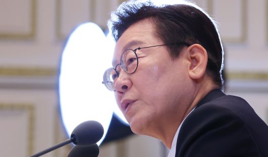 ▲ 이재명 대통령이 11일 청와대 영빈관에서 열린 취임 100일 기자회견 '회복을 위한 100일, 미래를 위한 성장'에서 취재진 질문에 답변하고 있다.