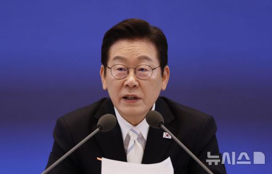[서울=뉴시스] 최동준 기자 = 이재명 대통령이 11일 청와대 영빈관에서 열린 취임 100일 기자회견 '회복을 위한 100일, 미래를 위한 성장'에서 미국 조지아주 현대차-LG에너지솔루션 합작 배터리 공장 건설현장 구금 노동자 관련 발언을 하고 있다. 2025.09.11. photocdj@newsis.com |