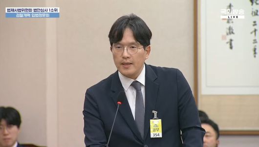 지난 5일 국회 법제사법위원회에서 열린 '검찰개혁' 입법청문회에서 브라이튼 법률사무소의 정재기 대표변호사가 발언하고 있다. /국회방송 |