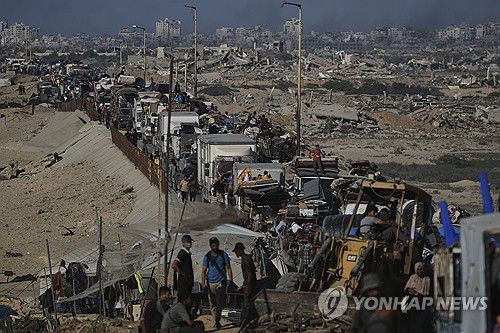 가자 북부 떠나는 피란민 행렬 |