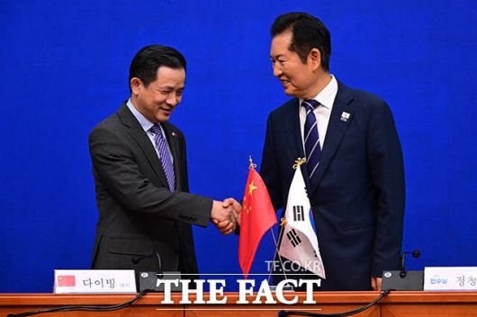 정 대표는 "한국과 중국은 수천 년 교류와 우정을 이어온 동반자이자 전략적 협력 파트너"라며 "수교 33년 동안 쌓아온 양국 간의 신뢰는 동북아의 평화와 안정, 번영에 크게 기여해 왔다"고 했다.