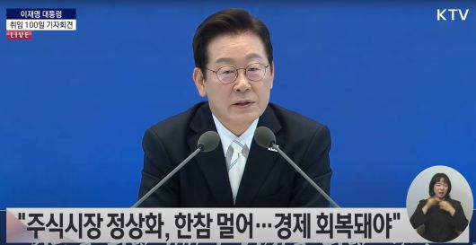 이재명 대통령이 11일 취임 100일 기자회견을 하고 있다./자료=KTV중계화면 |