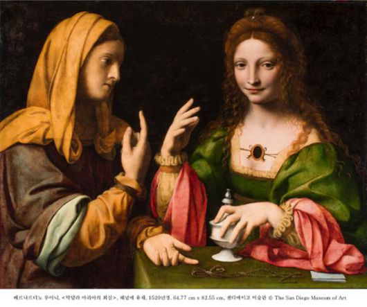 베르나르디노 루이니 '막달라 마리아의 회심', 패널에 유채, 1520년경, 64.77 cm x 82.55 cm. ©The San Diego Museum of Art 가우디움어소시에이츠 제공 |