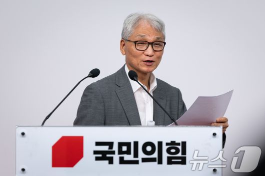 (서울=뉴스1) 유승관 기자 = 여상원 국민의힘 중앙윤리위원회 위원장이 11일 서울 여의도 당사에서 윤리위원회 회의 후 기자회견을 하고 있다. 윤리위는 이날 회의에서 지난 대통령 선거 과정에서 대선후보 교체 시도와 관련, 권영세 의원과 이양수 의원에 대한 당무감사위원회의 '당원권 정지 3년' 중징계 요구에 대해 징계하지 않기로 결정했다. 2025.9.11/뉴스1