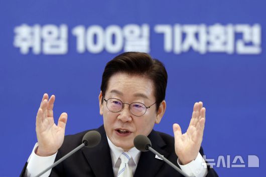[서울=뉴시스] 최동준 기자 = 이재명 대통령이 11일 청와대 영빈관에서 열린 취임 100일 기자회견 '회복을 위한 100일, 미래를 위한 성장'에서 질문에 답변하고 있다. 2025.09.11. photocdj@newsis.com |