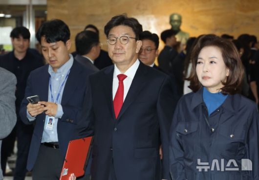 [서울=뉴시스] 고승민 기자 = 체포동의안이 본회의에 상정된 권성동 국민의힘 의원이 11일 서울 여의도 국회에서 의원총회를 마친 후 본회의장으로 이동하고 있다. 2025.09.11. kkssmm99@newsis.com |