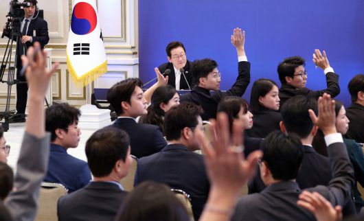 이어 기자단에서 준비한 대표 질문과 명함 추첨, 지목을 통한 질의 응답 시간을 가졌다. 이 대통령은 최대한 많은 기자들의 질문 받기 위해 당초 예상했던 90분을 훌쩍 넘긴 2시간 30분 가량 기자회견을 진행했다.