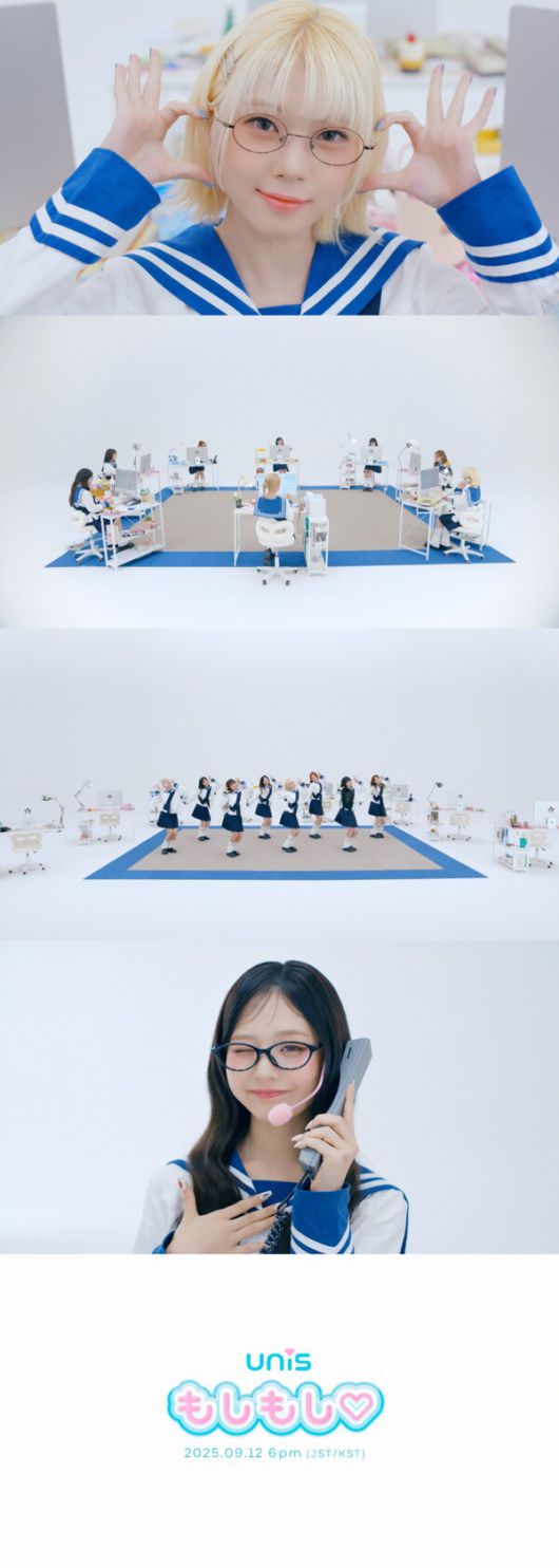 유니스(진현주, 나나, 젤리당카, 코토코, 방윤하, 엘리시아, 오윤아, 임서원)는 11일 정오 공식 SNS를 통해 신곡 '모시모시♡(もしもし♡)' 뮤직비디오 티저를 공개했다.
