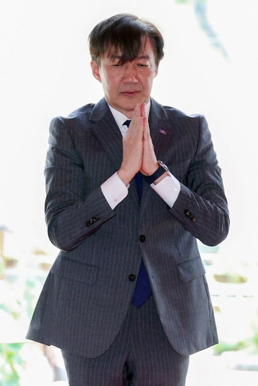 조국혁신당 조국 혁신정책연구원장이 4일 서울 종로구 조계사를 방문, 대웅전에서 삼배하고 있다. (사진=연합뉴스) |