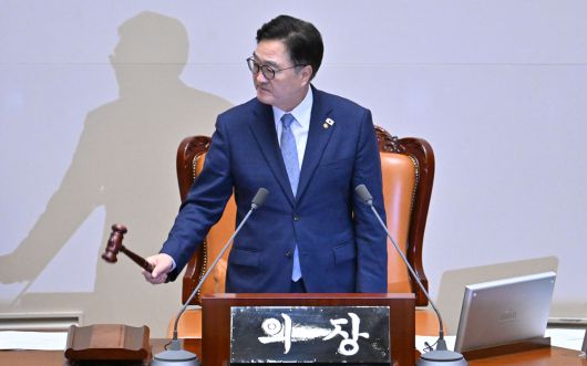 우 의장은 “이곳 국회 본회의장은 국민의 삶에 영향을 주고 공동체를 규율하는 의사결정이 이뤄지는 곳”이라며 “그만큼 무거운 책임이 따르는 공간이다. 정치 현실이 아무리 험악하더라도 지켜야 할 선은 지켜야 국민의 대표”라고 했다.