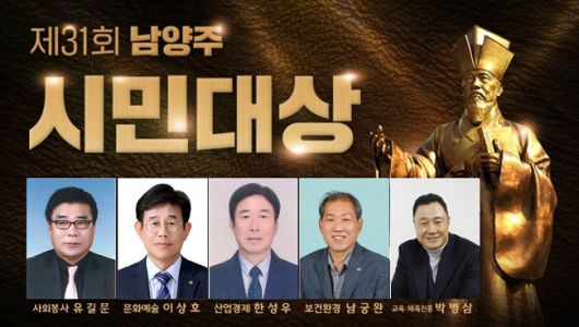 남양주시(시장 주광덕)는 지난 10일 제31회 남양주시민대상 수상자 5인을 선정했다고 밝혔다.