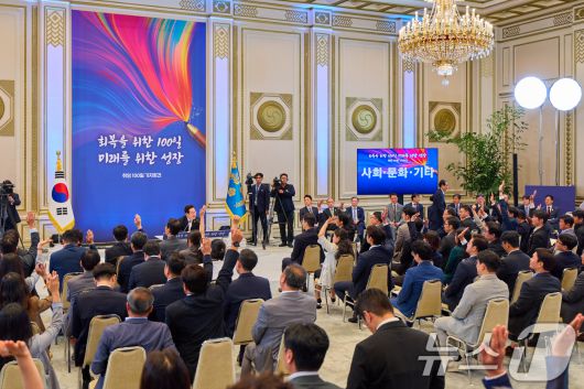 (서울=뉴스1) 허경 기자 = 이재명 대통령이 11일 청와대 영빈관에서 '회복을 위한 100일, 미래를 위한 성장'을 주제로 열린 취임 100일 기자회견에서 기자들의 질문에 답변하고 있다. (대통령실 제공. 재판매 및 DB 금지) 2025.9.11/뉴스1neohk@news1.krCopyright ⓒ 뉴스1. All rights reserved. 무단 전재 및 재배포, AI학습 이용 금지.