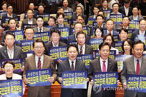 (서울=연합뉴스) 김치연 김유아 기자 = 여야가 어렵사리 합의했던 '3대 특검법' 수정안이 하루 만에 폐기되면서 국민의힘이 강경 투쟁 기조로 돌아섰다.