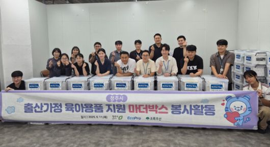 마더박스는 아기 목욕 수건, 순면 손수건, 치발기, 이유식 용기, 젖병 세트, 온습도계 등 신생아와 산모에게 필요한 친환경·안전 제품 10종으로 구성된 육아용품이다. 에코프로는 올해부터 경제적 여건이 어려운 취약계층 산모 34가정에 1인당 50만 원의 산후조리비도 지원한다.