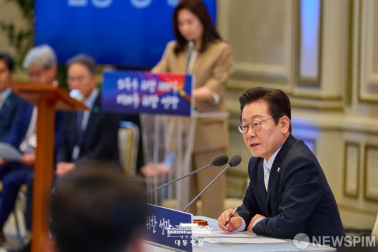 [서울=뉴스핌] 이재명 대통령이 11일 서울 종로구 청와대 영빈관에서 열린 취임 100일 기자회견에서 질의에 답하고 있다. [사진=대통령실] 2025.09.11 photo@newspim.com
