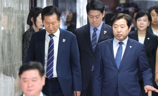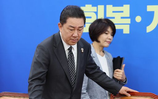 더불어민주당 정청래 대표와 김병기 원내대표가 11일 3대 특검법 관련 여야 협상 결렬 과정에서 공개 충돌했다. 왼쪽 사진은 정 대표가 이날 국회에서 열린 비공개 의원총회에 입장하는 장면이고, 오른쪽은 김 원내대표가 같은 날 국회 정책조정회의에 참석하는 모습이다. 허정호 선임기자 ⓒ 세상을 보는 눈, 세계일보