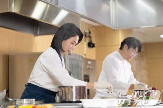 (서울=뉴스1) 허경 기자 = 이재명 대통령 부인 김혜경 여사가 11일 서울 광진구 세종대학교에서 열린 삼삼한 요리 경연대회를 방문해 요리 시연을 하고 있다. (대통령실 제공. 재판매 및 DB 금지) 2025.9.11/뉴스1