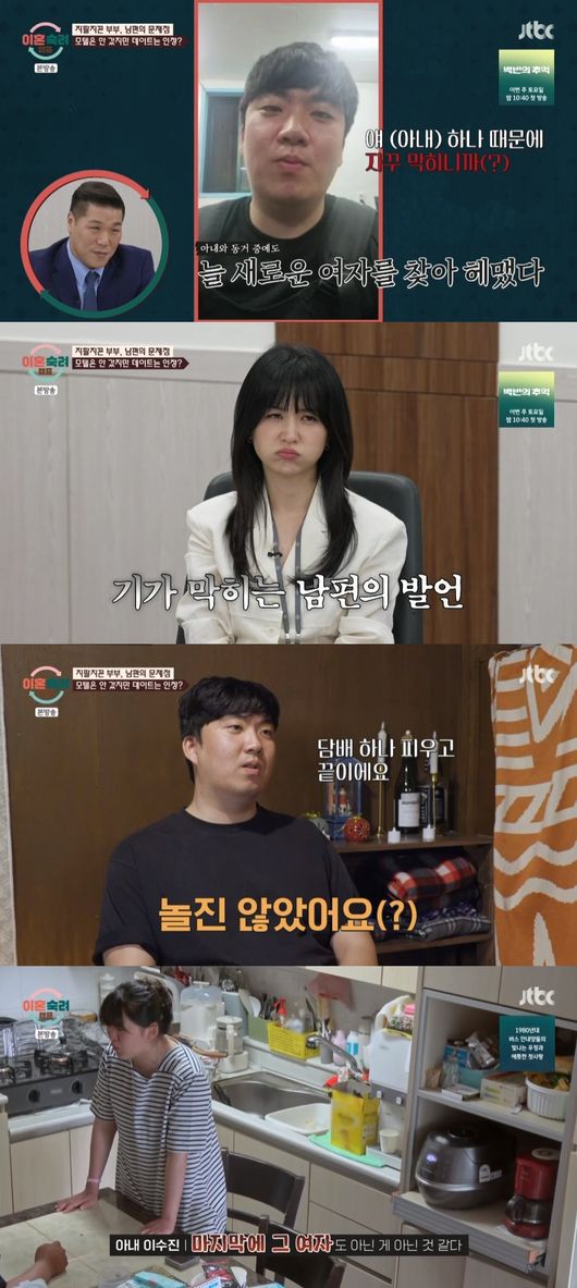 남편은 유흥업소 출입은 물론, 마음에 드는 여성들과는 사적인 만남까지 가졌다고. 결혼 전부터 늘 새로운 여자를 찾았다는 그는 "이 여자도 저 여자도 만나보고 싶은데 (아내) 하나 때문에 자꾸 막히니까"라는 충격적인 발언을 서슴지 않았다.