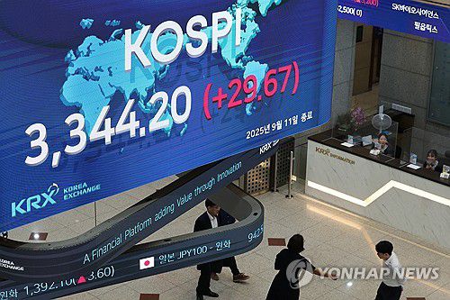 전날 코스피는 전장보다 29.67포인트(0.90%) 오른 3,344.20으로 거래를 마쳤다. 전날 세운 종가 기준 사상 최고 기록(3,314.53)을 하루 만에 새로 썼다.