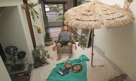 김대호는 "치울 걱정 하면 아무것도 못 한다"며 로망 실현에 대한 확고한 소신을 밝힌다. 그는 중정을 가득 채운 모래를 만지며 광기 어린 눈빛을 발산하는 표정으로 그의 진심을 드러낸다. 또한 모래 위에 커다란 라탄 파라솔까지 설치해 해변 분위기를 끌어올린다.