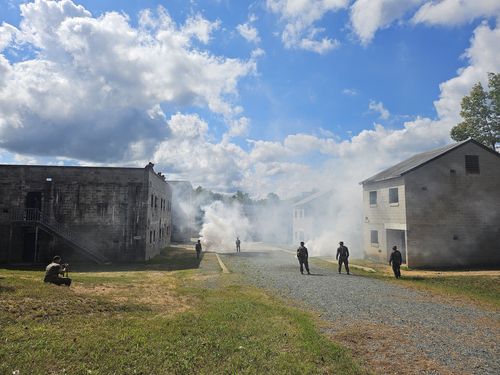 마주 보는 건물에서 양측이 소총과 기관총으로 총격전을 벌이다가 연막탄을 터뜨리고 건너편 건물로 진입하는 훈련이 반복됐다. 이따금 훈련용 포탄이 떨어지기도 했다.